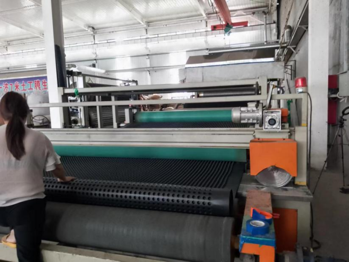 排水板的制造需要经过原料颗粒的加热->片材挤出->模具压铸成型->输送->成品收卷等几个步骤,各个环节需要密切且可靠的配合,任何一个环节出问题,都将产生废料,造成损失。